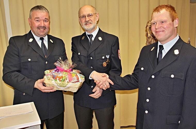 Zweiter Bürgermeister Siegfried Kirchner (Bürgerblock), wurde aus der aktiven Wehr verabschiedet. Nach den Worten von Kommandanten Ralph Morgenroth trat Kirchner 1971 in die Wehr ein und hat 46 Jahre aktiven Dienst verrichtet. Er habe eine Ehrung erfahren, als er 40 Jahre dabei war. "Du bist durch deinen Einsatz ein Vorbild für unsere Jugend", sagte Morgenroth und überreichte ihn zusammen mit Zweitem Kommandanten Sven Liebermann ein Präsent.
