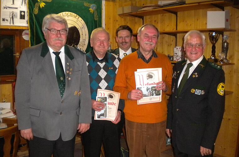 Dieter Schramm wurde für seine 40-jährige Treue zum Verein geehrt. Schramm war auch jahrelang aktiver Schütze und war zur Stelle, wenn Arbeit anfiel. Auf gar fünf Jahrzehnte kann Dieter Lohm zurückblicken.
