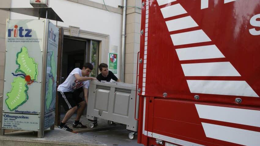 Na, das wird wohl grad so reingehen", schätzte Eltmanns Bürgermeister Michael Ziegler (CSU), als am Dienstagmorgen der erste Rollcontainer mit Hilfsgütern für Deggendorf gepackt war. Vom Foyer des Ritz' (Regionales Informations- und Touristikzentrm) gingen der erste Behälter und viele weitere Güter direkt in den Versorgungs-Lastwagen der Eltmanner Feuerwehr. Die Truppe bringt die Spenden den Hochwasseropfern in Niederbayern. Auch der Knetzgauer Bürgerbus schloss sich der Fahrt an, ebenfalls randvoll mit Hilfsgütern.