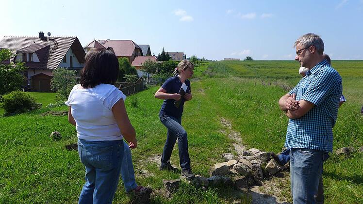 Besonders betroffen vom Starkregen waren Grundstücke im Baugebiet "Am Schatter" gewesen. Dort begann auch die Besichtigungstour. Idyllisch liegen die Grundstücke am Hang oberhalb des Dorfes. An Pfingsten allerdings schossen aus dem Hang die Wassermassen in nicht gekannter Heftigkeit über den Entwässerungsgraben hinweg und drohten, in die Wohnhäuser zu laufen.
