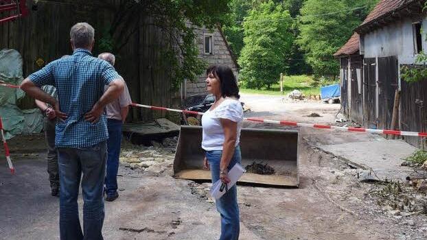 Kein Vergleich mit den Flutschäden an Donau und Elbe. Und doch haben auch die Menschen in den Haßbergen mit Folgen von Unwetter und Starkregen zu kämpfen. In Breitbrunn, wo ein Unwetter an Pfingsten gewütet hatte, haben die Aufräumarbeiten längst begonnen. Der Gemeinderat sah sich am Samstag unter Leitung von Bürgermeisterin Gertrud Bühl (Freie Wähler) vor Ort um. Die Bürgermeisterin brachte den Betroffenen Antragsformulare mit, mit denen sie über das Landratsamt eine Soforthilfe der Regierung beantragen können.