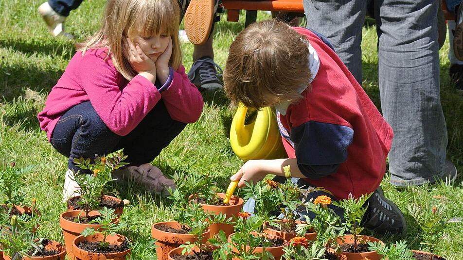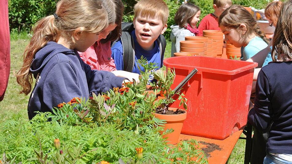 Bei der Aktion des Zeiler Obst- und Gartenbauvereins lernten die Kinder das Eintopfen von Pflänzchen. Und, dass man Blumen essen kann.