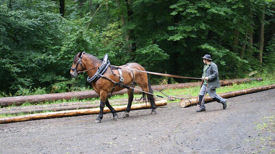 Früher wurden alle gefällten Bäume mit Pferden aus dem Wald geschleppt, heute dröhnen stattdessen Maschinen durch den Wald. Wer heute die Arbeitstiere einsetzt, wird zur Attraktion.