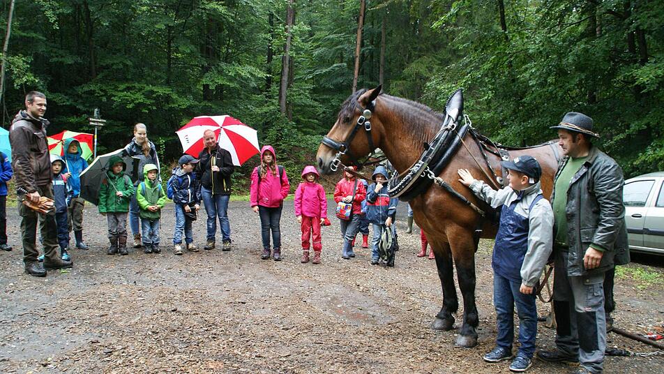 Holz gerückt wird natürlich erst im Winter - die Aktion am Dienstag war eigens für die Ferienprogramm-Kinder, die begeistert dabei waren, auch wenn es immer wieder regnete. Wer sich traute, durfte Gustl auch direkt kennenlernen und für seinen Einsatz loben.