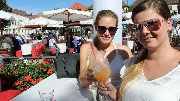 Der Haßfurter Anwohner Uwe Saggau, selbst einst erfolgreicher Gastronom, kennt als gebürtiger Hamburger die Welt und meinte am Samstag zum neuen Marktplatzfest kurz und bündig: "Ich finde, dass sowas in jede Stadt gehört. In Hamburg hat jeder Stadtteil sein Fest!" Das passt wunderbar, signalisieren auch Sara-Elena Tully aus Eltmann und Madeleine Appelmann aus Wonfurt, die neben strahlend roten Geranien ihren Bellini genießen.