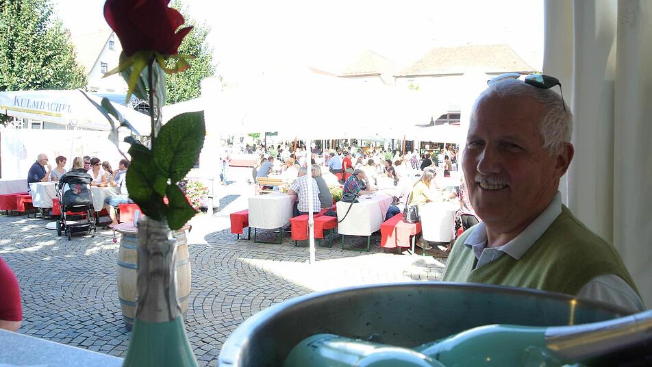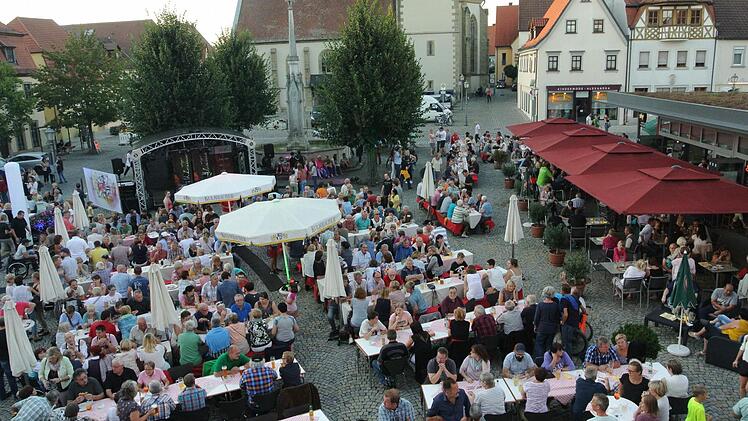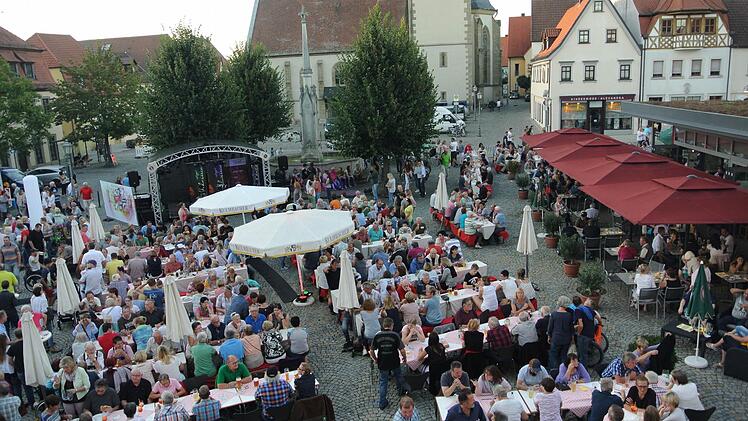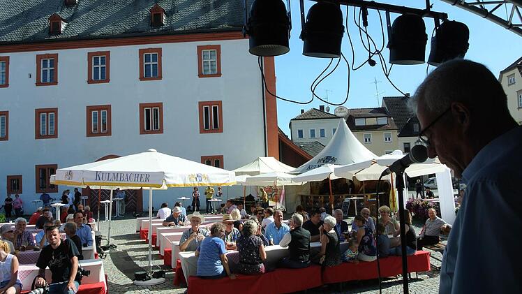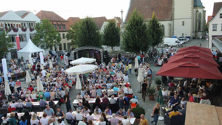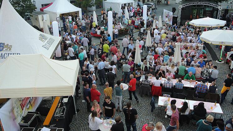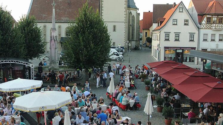 Bürgermeister Günther Werner erinnert kurz an die Idee, mehr Leben in die Altstadt zu bringen. Der Marktplatz ist zentrale Stelle, einst Treffpunkt bei Märkten, er verdiene diese Belebung, die Stadt wolle ein Zeichen setzen für Geselligkeit. Der Bürgermeister freut sich: Selbst Landrat Wilhelm Schneider würdigt die Bemühungen der Kreisstadt, für die Umgebung attraktiver Treffpunkt sein zu wollen und ist mit Gattin und Familie zu Gast.
