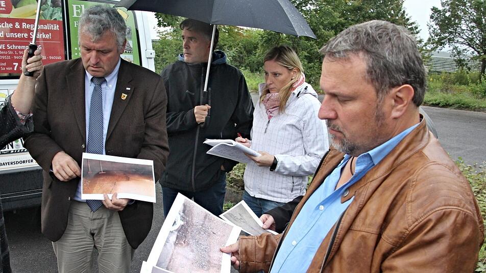 Ebern - Wind und Regen wehte den Mitgliedern des Bauausschusses Ebern auf ihrer Tour am Mittwochabend um die Ohren. "Hier wird viel Geld verbuddelt, was wir gar nicht sehen", sagte Bürgermeister Jürgen Hennemann (SPD) bei einer Ortseinsicht in der ehemaligen Kaserne, wo ein Regenrückhaltebecken und Kanäle saniert werden.