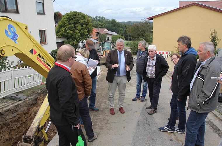Im Ortsteil Kurzewind wird derzeit eine Kleinkläranlage gebaut, Kanäle und Kabel verlegt und die Straße auf gesamter Breite wiederhergestellt. Hier erklärte Martin Lang, dass es teilweise "Höhenprobleme" beim Kanal gegeben habe. "Es konnte aber alles gelöst werden", sagte er. Vor Ort zeigte er, welche Tragschicht die Straße bisher hatte. "So 25 bis 30 Zentimeter stark ist der Aufbau." Über die sogenannte "Erhaltungsmaßnahme" sollen in Kurzewind 700 Quadratmeter Straßenfläche einen neuen Aufbau erfahren, erläuterte Bürgermeister Hennemann. Die zusätzliche Summe hierfür von 15 000 Euro könnte mit dem im Haushalt eingestellten Betrag für das städtische Straßenerhaltungsprogramm gedeckt werden, weshalb auf die Bürger in Kurzewind keine weiteren Kosten zukämen.