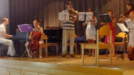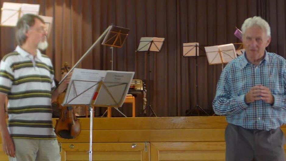 Oder die Schwestern Lina und Nora Hartmann, zwei Schülerinnen aus Bamberg, die dort an der städtischen Musikschule Klarinetten- beziehungsweise Fagottunterricht erhalten. Walter Forchert hat seine Frau Gabriele mitgebracht. Sie musiziert ansonsten im Bamberger Kammerorchester Collegium Musicum. Nach München, woher Dold vor 54 Jahren selbst kam, hat er bis heute Verbindung. Von da kamen junge Musikschülerinnen mit ihren Streichinstrumenten und reihten sich in den musikalischen Reigen ein.
