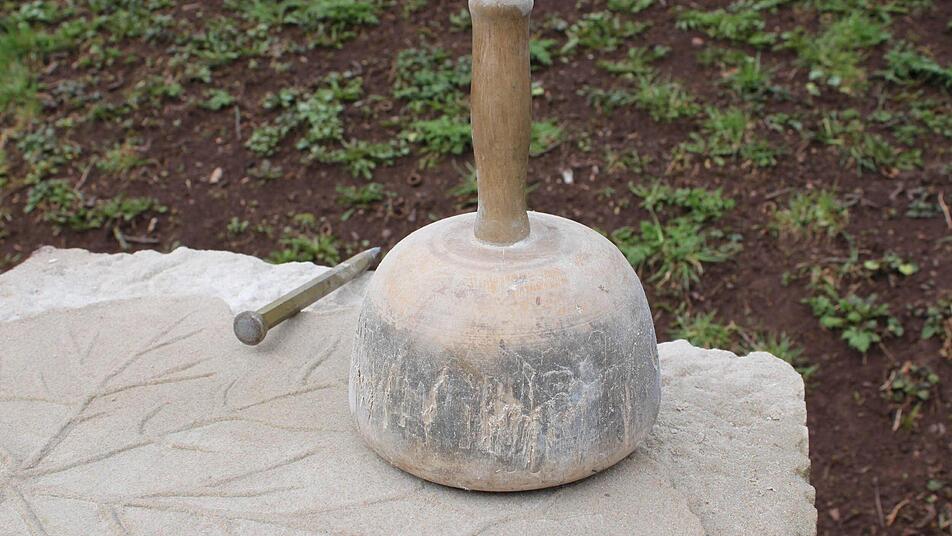 Muskelkraft statt Pressluft Der 25-Jährige bringt gerade im Garten mit Klüpfel und Eisen einen Stein in Form. Jeder Schlag mit dem hammerähnlichen Werkzeug sitzt. Binnen sechs Stunden ist so aus dem weißen Sandstein aus einem Steinbruch in Schönbrunn ein fein gezeichnetes Weinblatt entstanden.