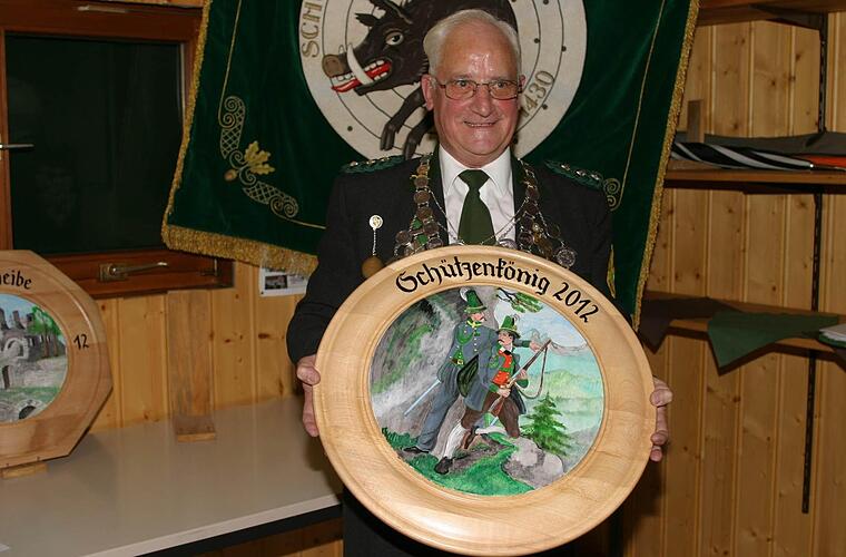 Der 73-Jährige hatte sich auf seine Erfahrung und ruhige Hand verlassen, jedoch bei der Abgabe des Königsschusses nicht das Gefühl gehabt, erneut ganz oben auf dem Thron zu stehen, wie er berichtete. Die vom letztjährigen König Carsten Präger spendierte Scheibe mit Motiven der Bayerischen Gebirgsschützen von Reichenhall von 1841 wird nun Borscherts Arbeitszimmer schmücken.