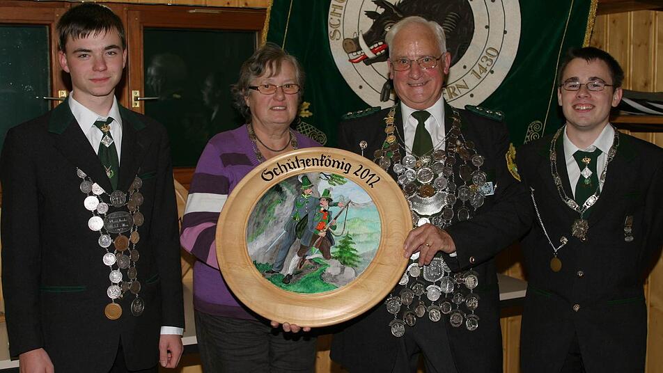Die Spannung ist vorbei. Joseph Borschert brachte das "Kunststück" fertig, nach 2010 innerhalb von drei Jahren zum zweiten Mal die Königswürde zu erlangen, nachdem er über drei Jahrzehnte auf diese Ehre hatte warten müssen und ihm zuvor immer nur die Ritterschaft gelungen war. Jetzt regiert er die Schützengesellschaft Ebern erneut, noch dazu zieht seine Frau Heidi als erste Ritterin mit in das Königshaus ein. Während ihm ein 101-Teiler die Würde einbrachte, schaffte Ehefrau Heidi einen 130-Teiler. Sebastian Drößmar steht den beiden mit einem 188-Teiler als zweiter Ritter zur Seite. Bei der Jugend stellte Markus Stretz sein großes Talent erneut unter Beweis und konnte seinen Vorjahrestitel mit einem 222-Teiler verteidigen.