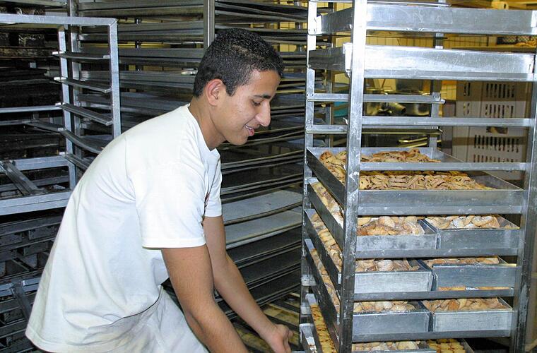 Arbeitsbeginn um 6 Uhr Nun steht Ahmed seit Anfang August von montags bis freitags frühmorgens um sechs Uhr in der Backstube und lernt, wie man Körnerbrötchen, Brezeln und Vollkornbrot zubereitet. Nein, das einfache ägyptische Landbrot, aisch baladi genannt, vermisse er nicht, schüttelt der sympathische junge Mann auf Nachfrage seinen Kopf, und fügt hinzu: "Ich mag deutsches Brot." Auch das frühe Aufstehen bereite ihm keine Probleme.