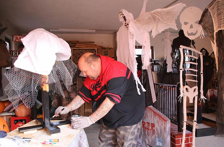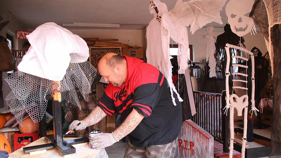 Für alle Gruselfans ist Halloween der Spaß des Jahres. Auch für Kai Hopfe. Der Stettfelder bastelt seit fünf Wochen an seiner Dekoration.