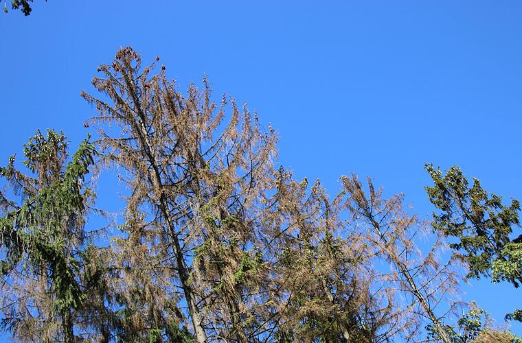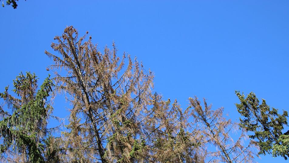 Kupferstecher gehaust haben, ist kein Leben mehr. Die Fichtenbestände haben im Landkreis Haßberge in dem heißen und trockenen Sommer keine Chance gehen den Schädling gehabt.