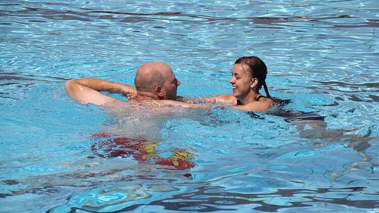 Jeder Dritte kan nicht schwimmen "Wir zeigen euch, wie man jemandem rettet, und geben euch Tipps und Hilfestellungen zu Baderegeln, Tauchen und Sprungübungen", begrüßte Rath die Schulkinder. Klum wies darauf hin, dass fast ein Drittel der schulpflichtigen Kinder nicht oder nicht sicher schwimmen kann. Toll fand sie es, dass Ebern die "Leuchtturmschule" dieser Aktion im Landkreis Haßberge ist. In Bayern gebe es insgesamt zehn solcher Schulen.