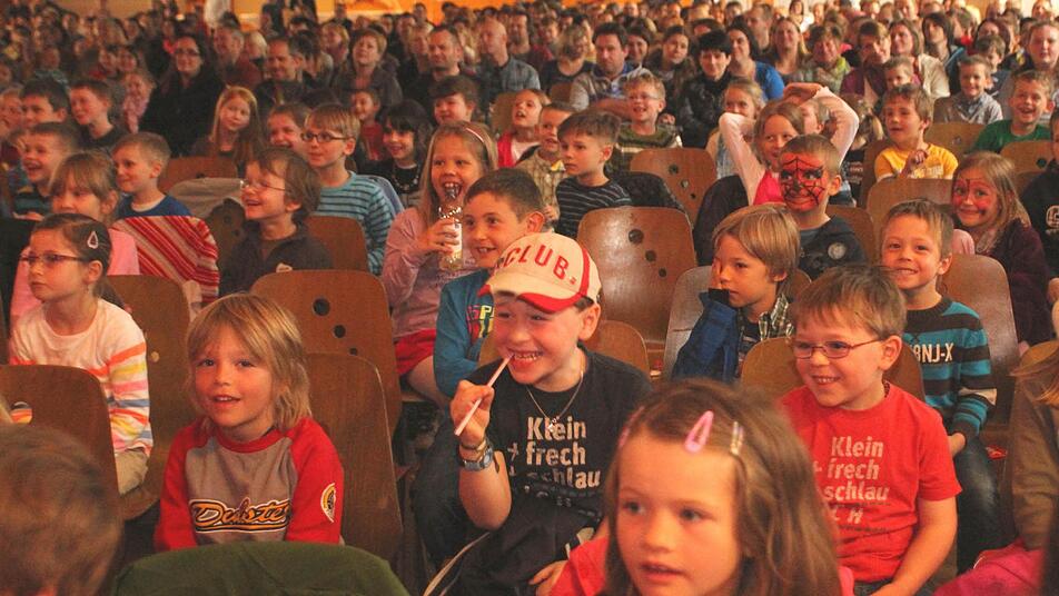 Rund 700 Kinder mit ihren Eltern oder Großeltern verfolgten die Geschichte "Knallpurgas Reise zum Mond" am Samstag in der Franz-Hofmann-Halle in Knetzgau. Das Spektakel veranstaltete der "Knax-Klub" der Sparkasse Ostunterfranken. Unter dem Begriff "Knax-Klub" vereinigt das Geldinstitut alle jungen Kunden im Alter bis zu zehn Jahren.