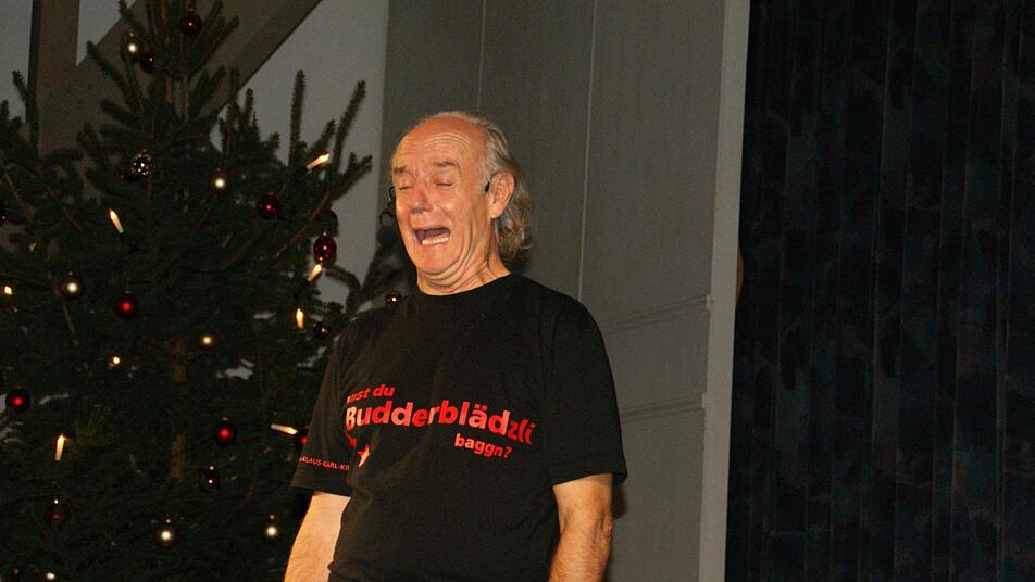 Im Programm "Bäggli, Bunsch und Budderblädzli" geht es natürlich um Weihnachten und das wird für Klaus Karl Kraus "immer bleeder, odder ned?" Er wehrt sich gegen Beleuchtungs-Wettrüsten und Geschenke-Wahnsinn. "Bei mir müssder aufpaß", erklärt er, der eigentlich von seinem Kindheitstrauma, der missglückten Martinslaterne und dem eskalierten Umzug erzählen will, auf unterwegs aber fünf andere Themen bearbeitet.