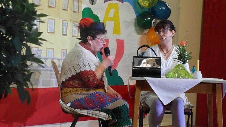 Dieses Jahr warteten einige Restaurant-Sketche auf die Zuschauer: So ließen sich die Dorfratschen "Maicheret und Schwester Erika" (Margit Suckert und Astrid Schwappach) von Kellner Bastian Döhler bedienen, um das dörfliche Geschehen mit Maicherets legendärem Fremdwörtermissbrauch unter die Lupe zu nehmen.