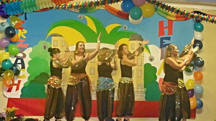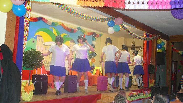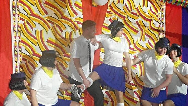 Die Tanzgruppe des TSG Ebensfeld sorgte für rockige und orientalische Tanzeinlagen, bevor die Fußballer des SVM Untermerzbach das Publikum mit ihrer Stewardessen-Show auf die letzte Reise des Abends mitnahmen.