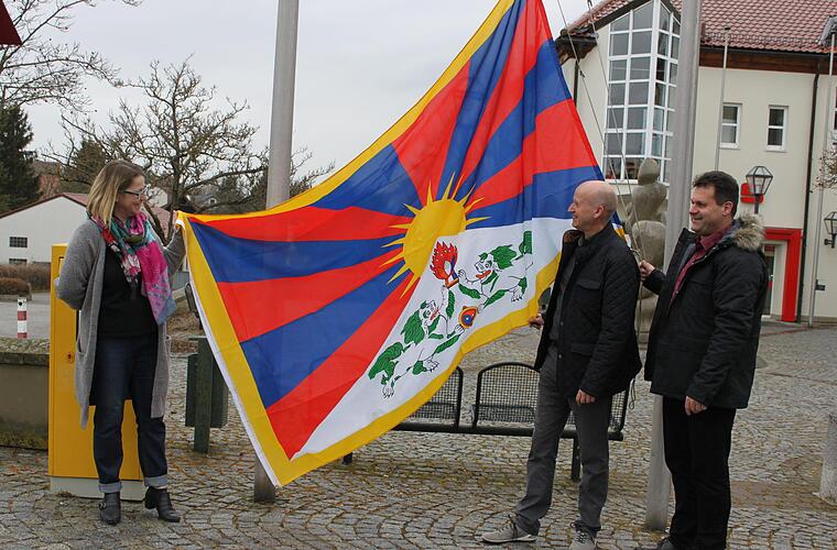 Ein Zeichen für die Menschenrechte setzten alle drei Bürgermeister der Gemeinde Knetzgau. Sie hissten die Tibet-Fahne zum Jahrestag.