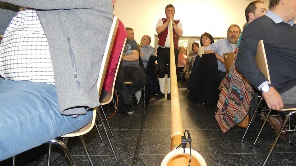 Natürlich durfte auch Elmar Schneidawind an seinem Alphorn an diesem Abend nicht fehlen. Mit der "Bergmelodie" erntete der Akteur an seinem außergewöhnlichen Instrument einen außerordentlich großen Beifall.