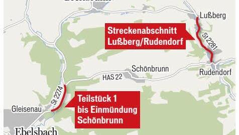 Der Ausbau der Staatsstraße 2274 von Ebelsbach in Richtung Breitbrunn erfolgt dabei in zwei Bauabschnitten, Der Bauabschnitt I betrifft das Teilstück von Gleisenau bis nach der Einmündung nach Schönbrunn und soll vor Weihnachten umgesetzt werden.