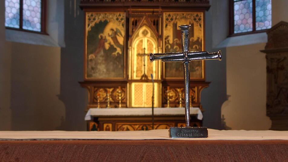 Dieses, ursprünglich aus Nägeln des Dachstuhls der im Zweiten Weltkrieg zerstörten Kathedrale in Coventry gefertigte Kreuz, gilt als Zeichen der Versöhnung zwischen Nationen, Kulturen und Religionen. "Es ist ein Kreuz für beide Gemeinden. Sie müssen es sich teilen", sagte der Anglikaner zu seinen Mitbrüdern. Gemeinsam mit der Osterkerze wird dieses Kreuz Jahr für Jahr zwischen den Gemeinden hin und her wandern.
