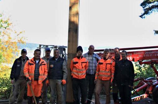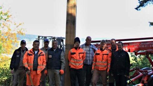 Auf Eberns "Heiligem Berg" wurde ein neues Signum aufgestellt. Ein großer Teleskop hubwagen fuhrwerkte mit dem Zehn-Meter-Teil herum. Einweihung ist voraussichtlich am 11. Oktober.