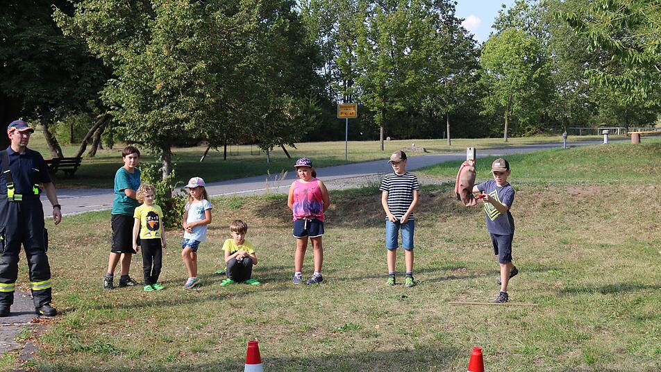 Die Löschgruppe Fierst bot im Rahmen des Ferienprogramms der Eberner Vereine einen Feuerwehrparcours an. Die Kinder waren mit Spaß dabei und hatten Freude, die einzelnen Utensilien selbst auszuprobieren.