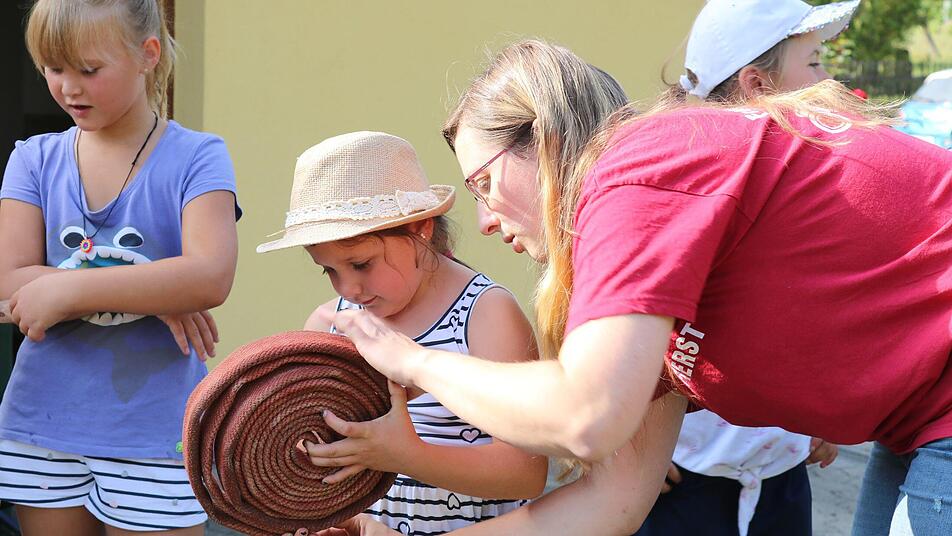 Die Kinder hatten viel Spaß dabei, den Parcours aufgeteilt in zwei Gruppen zu durchlaufen und so auf spielerische Art und Weise die Arbeit und Geräte der Feuerwehr kennenzulernen. Bei der Frage, ob sich die Kinder auch vorstellen könnten, später mal zur Feuerwehr zu gehen, gab es schließlich unterschiedliche Meinungen. Während ein Junge schon seinem 12. Geburtstag entgegenfiebert, um endlich bei der Jugendfeuerwehr in Ebern mitmachen zu können, antworteten die Mädels etwas skeptischer auf diese Frage. Zum Abschluss des anstrengenden und aufregenden Nachmittags wartete am Ende auf jedes Kind noch ein Eis zur Abkühlung.