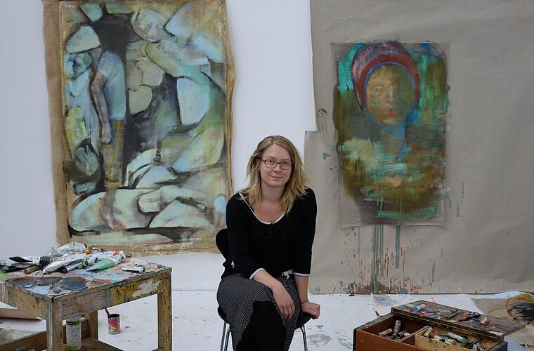 Die 27-jährige Lisa Wölfel aus Haßfurt studiert an der Akademie der Bildenden Künste in Nürnberg und wurde kürzlich mit einem renommierten Preis ausgezeichnet. Derzeit malt sie für eine Ausstellung.