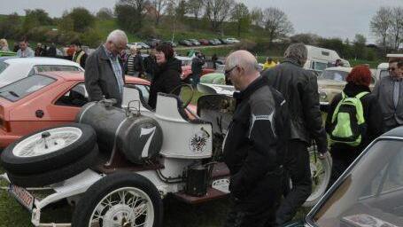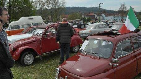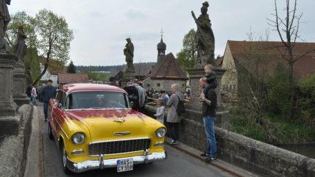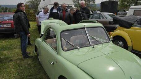 Einer der vielen Hingucker war der "Champion" von Wolfgang Kröger aus Bad Staffelstein. Im feinen Smaragdgrün lackiert bringt das Gefährt aus dem Jahr 1953 immerhin 15 PS auf die Straße. Kaum hatte es auf der Wiese geparkt, war das Auto schon von Besuchern umzingelt. Geduldig beantwortete Kröger die Fragen zu seinem Auto, von dem es seiner Aussage nach nur noch zwei intakte Fahrzeuge in Deutschland gebe - eines davon ist seins. Einige schöne Karossen aus der Vorkriegszeit und den Jahren des Wirtschaftswunders gab es zu bestaunen, darunter amerikanische Straßenkreuzer, wie ein "Chevi" oder Cadillac.
