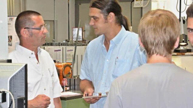 Faszinierende Präzision Dabei blickt ihnen der "Senior-Ausbilder", Bertram Reuß über die Schulter, um noch die eine oder andere Ausführung des Azubi Lukas Müller zu ergänzen.