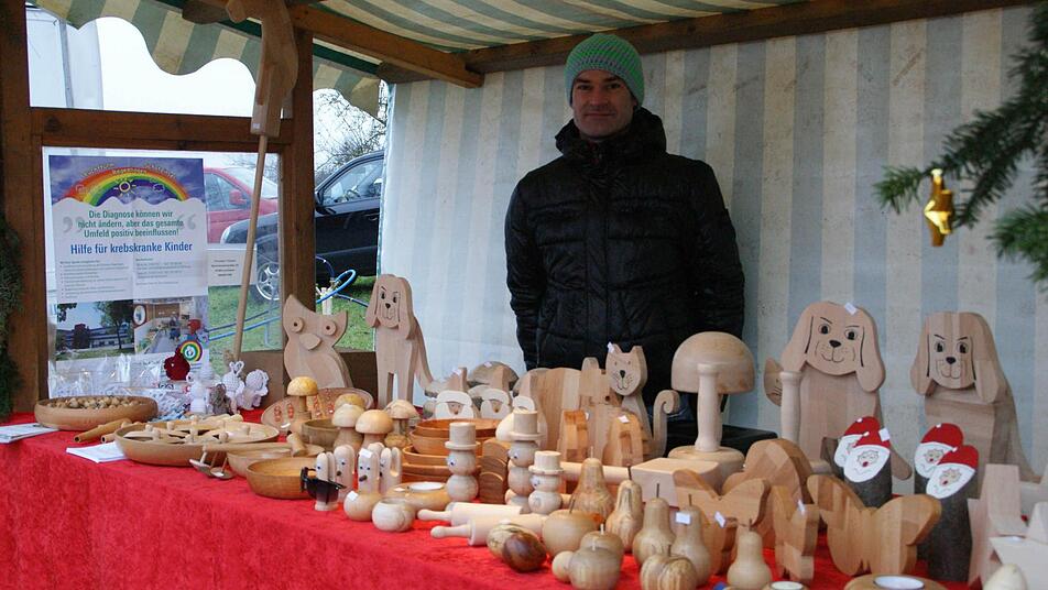 Seine Werke kamen gut an. Das ermutigte ihn, die Vielfalt noch zu erweitern. Bei Thorsten Tröster gibt es auch Raritäten wie die Holzpilze, die Hutkrapfenbäckerinnen verwenden, oder Witziges wie das Brillenmännchen, daneben andere Holzprodukte wie Sterne oder Brotzeitbretter.