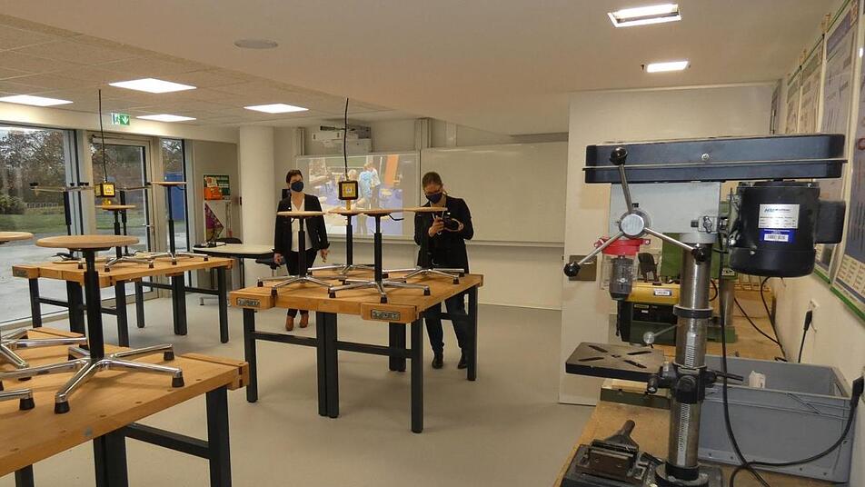 "Der heutige Tag ist ein Meilenstein in der Geschichte der Dr.-Auguste-Kirchner-Realschule." Das sagte Landrat Wilhelm Schneider (CSU) bei einem Pressetermin anlässlich der Fertigstellung der neuen Räume. Im kleinen Kreis stellte Schulleiter Hartmut Hopperdietzel bei einem Rundgang das umgesetzte Konzept vor, das seinesgleichen in Unterfranken sucht. Der Landrat zeigte sich sicher, dass die sanierte Realschule nun ein Ort für andere Schulleiter wird, die sich hier Inspirationen für den eigenen Umbau holen.