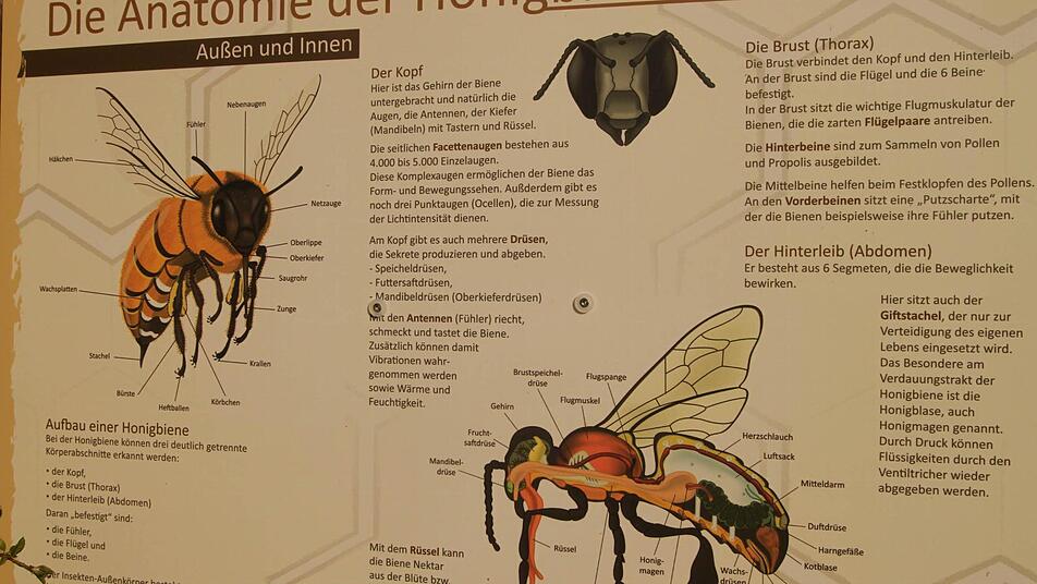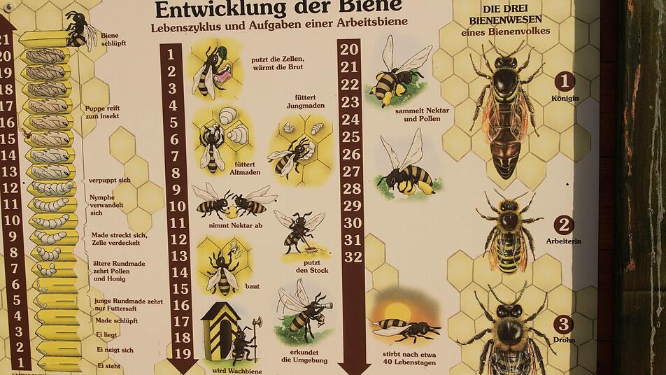 An 14 Stationen kann man in Kirchlauter Wissenswertes über die Bienen und ihren Nutzen erfahren. Der Imkerverein hat zudem in der Nähe des Lehrbienenstandes ein Pavillon gebaut