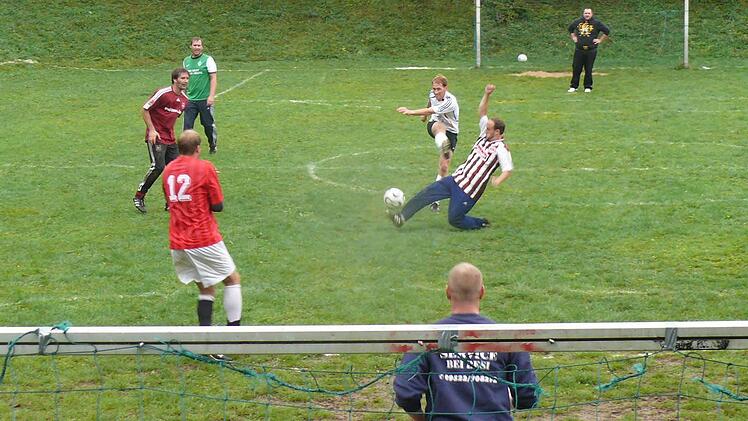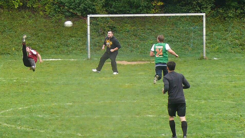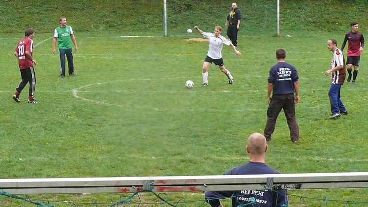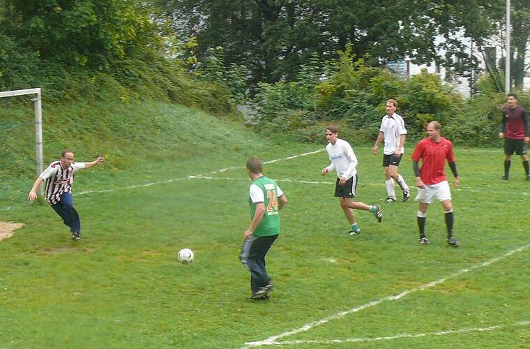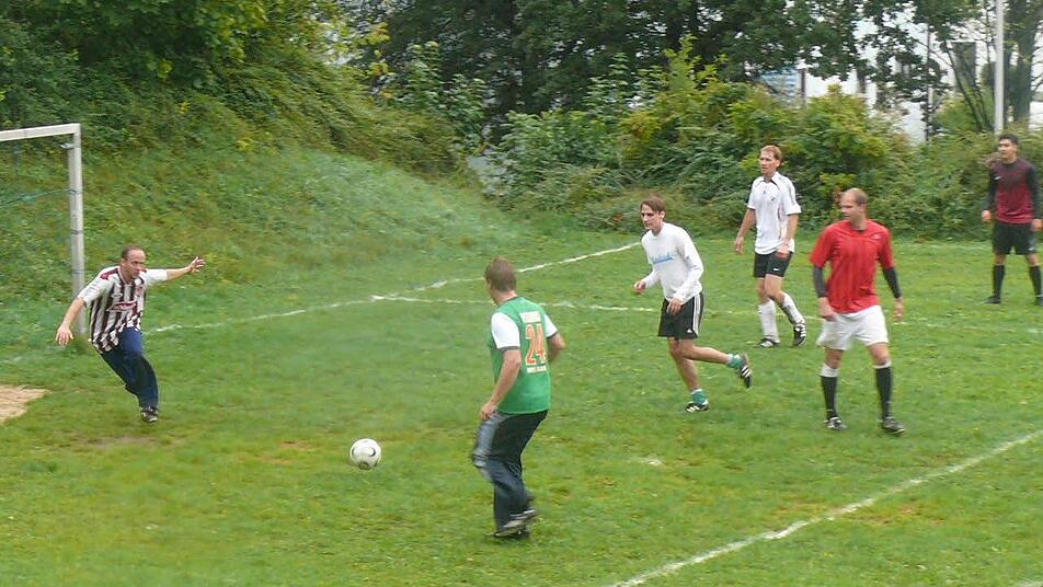 Das Gras gemäht Zwei der früheren Spieler, Martin Hartmann und Stefan Gerbig, hatten das Revival organisiert. Dazu mussten sie ganz schön Vorarbeit leisten, denn: Im Gegensatz zu früheren Zeiten war das Gras nicht gemäht, einige Flaschen lagen herum und die Tornetze fehlten. Deshalb säuberten und mähten sie tags zuvor den Platz gemeinsam mit Johannes "Ferdl" Schramm, der mit seinem Traktor und Mähwerk angerückt war.