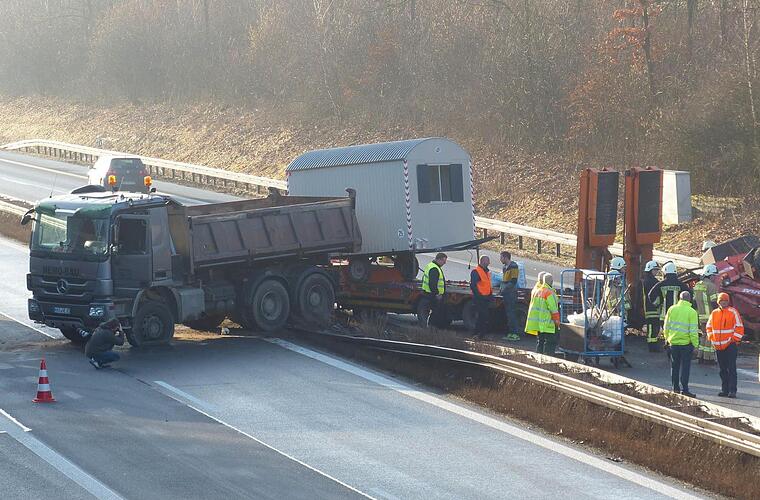 Wie die Polizei mitteilte, war das Lkw-Gespann am Mittwochmorgen auf der A70 ins Schleudern geraten und anschließend mit der Mittelleitplanke kollidiert. Vom Anhänger stürzte ein Radlader auf die Fahrbahn, was eine aufwändige Bergung nach sich zog. Der Fahrzeuglenker blieb unverletzt. Die Fahrtrichtung Bamberg musste mehrere Stunden komplett für den Verkehr gesperrt werden.