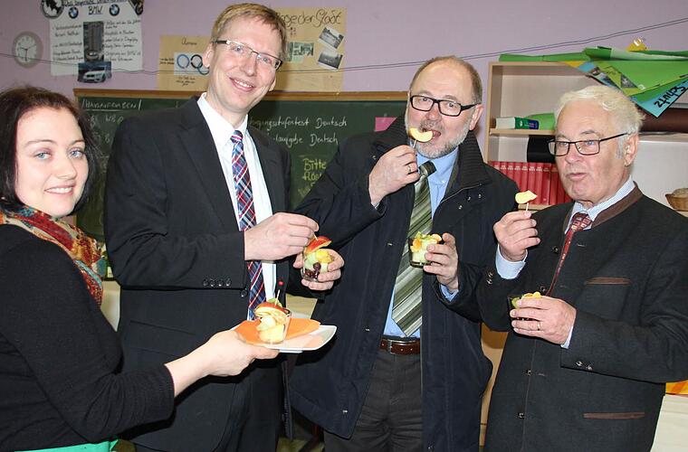 Ein Ansatz, der auch bei der Rede des Landrats anklang: "Bei knurrendem Magen lässt die Konzentration nach", berichtete er aus eigener Erfahrung. Vor einer fünften Klasse gelobte der Kreis-Chef, dass "wir alles tun wollen, damit Ihr in einem angenehmen Klima und toller Umgebung lernen könnt'."