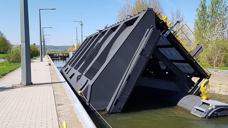 Beide tragen ein breites Grinsen im Gesicht: 900 PS unter den Füßen, blauer Himmel über sich und ein Job, der echte Kerle verlangt. Sascha Friedrich und Frank Scheuble haben die letzten Tage damit verbracht, mit einem ungewöhnlichen "Schubverband" auf dem Main von Viereth nach Haßfurt und zurück zu schippern. Der Schein trügt: Es war keine Vergnügungsfahrt mit diesem Teil, das sich die meiste Zeit seines Lebens nicht auf dem Wasser bewegt, sondern damit beschäftigt ist, das Wasser aufzuhalten. Über 200 Tonnen Stahl hat ein Aschaffenburger Stahlbauer zu einem so genannten Revisionsverschluss zusammengefügt, der künftig im Bereich des Wasserstraßen- und Schifffahrtsamtes Schweinfurt zwischen Viereth und Rothenfels seinen Dienst tun wird.