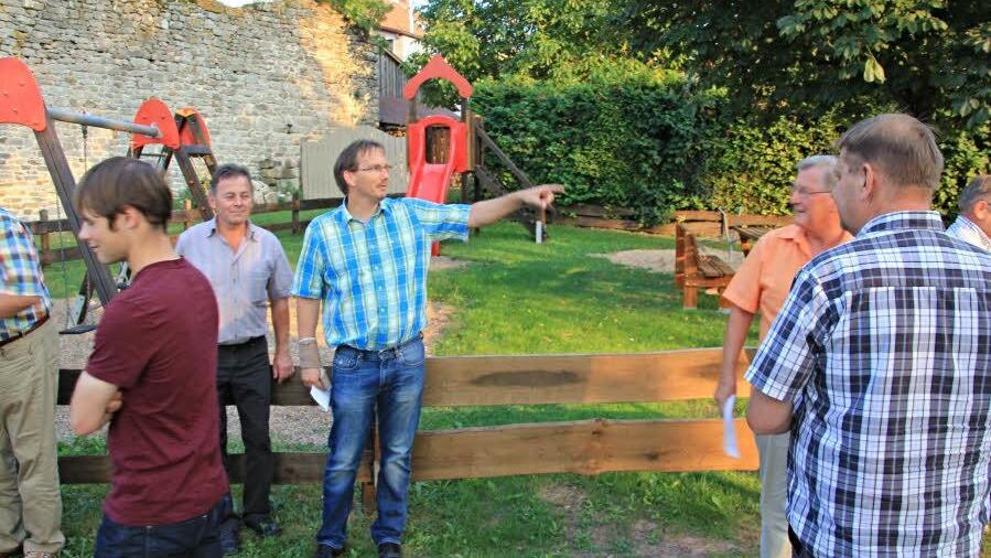 Wolfram Thein gab vor Ort gegenüber dem Gremium entsprechende Erläuterungen zu den Maßnahmen. Neu hinzukommen sollen ein sogenanntes Baugerüst und ein Sandbagger. Bleiben soll die Schaukelanlage und oben auf der bestehenden Rutsche wolle man ein Podest anbringen. Etwas ausgebessert werden soll auch der Zaun am Spielplatz und an verschiedenen Stellen soll der Sand gegen Kies ausgetauscht werden.