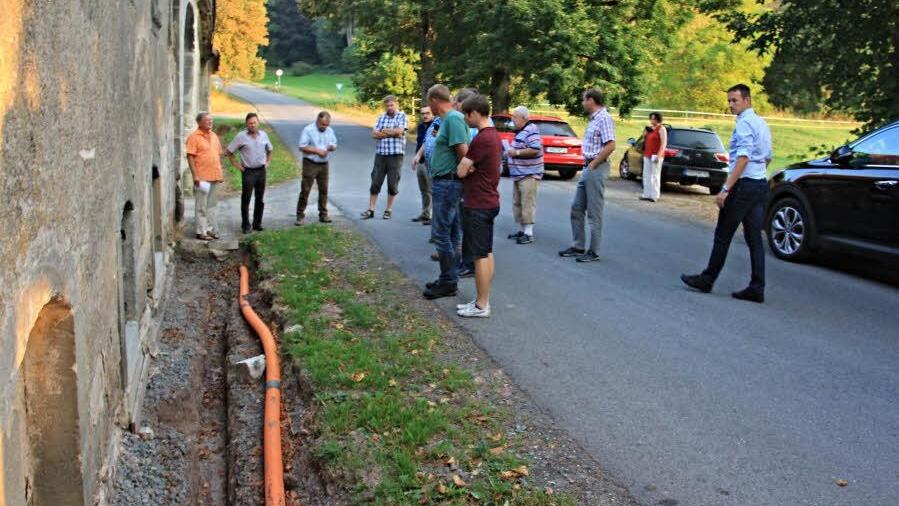 Eine marode Mauer in der Zeilbergsiedlung wurde in Augenschein genommen. Es soll für Abhilfe gesorgt werden.