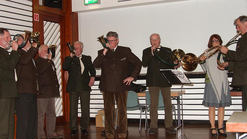 Die Jagdhornbläser umrahmten die Veranstaltung mit ihren musikalischen Beiträgen, am Ende natürlich mit "Sau tot" und "auf Wiedersehn".