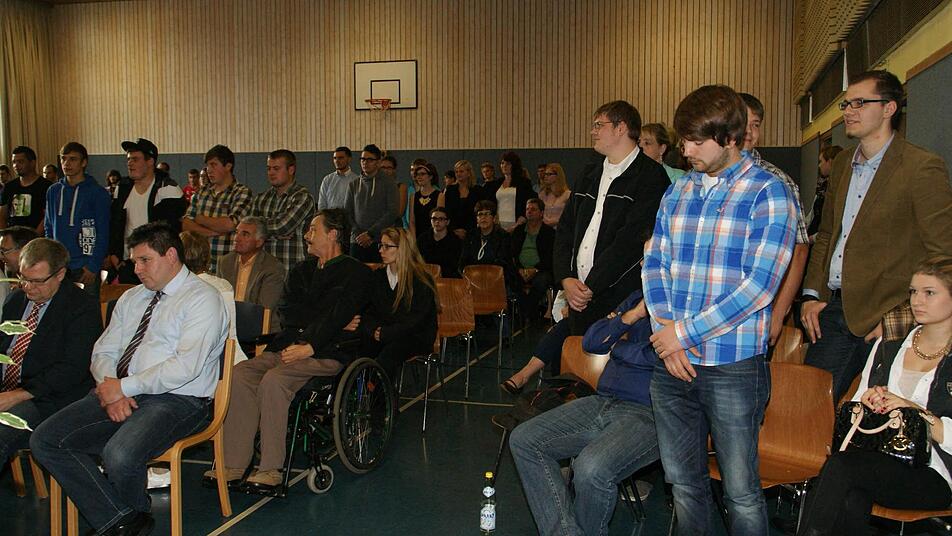 Die Feier in Haßfurt Am Samstag um kurz vor 17 Uhr ging für 68 junge Menschen die Ausbildungszeit endgültig zu Ende. In der Aula der Heinrich-Thein-Berufsschule in Haßfurt sprach Kreishandwerksmeister Hans-Georg Häfner (Eltmann) die Junghandwerkerinnen und Junghandwerkwer des Abschlussjahrgangs 2014 von den Pflichten als Auszubildende frei.