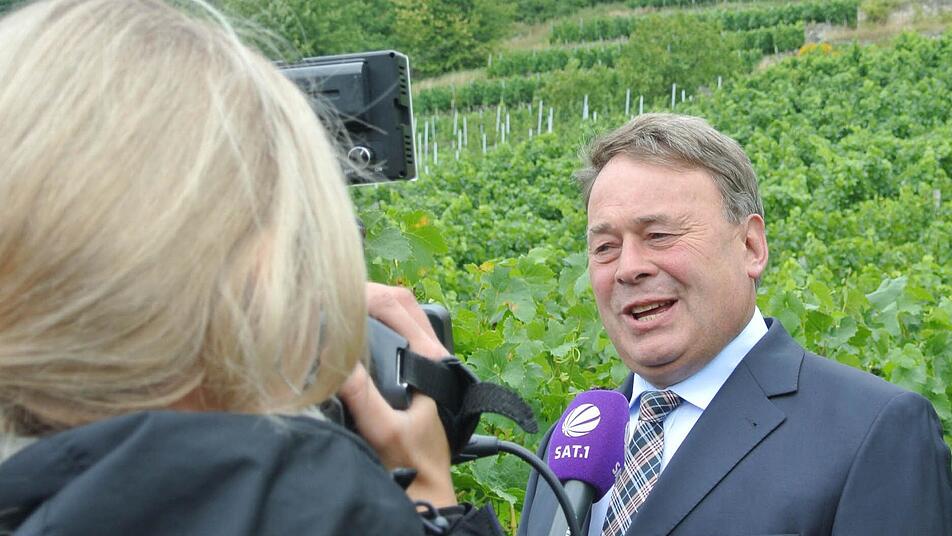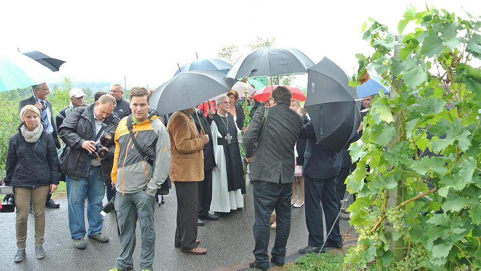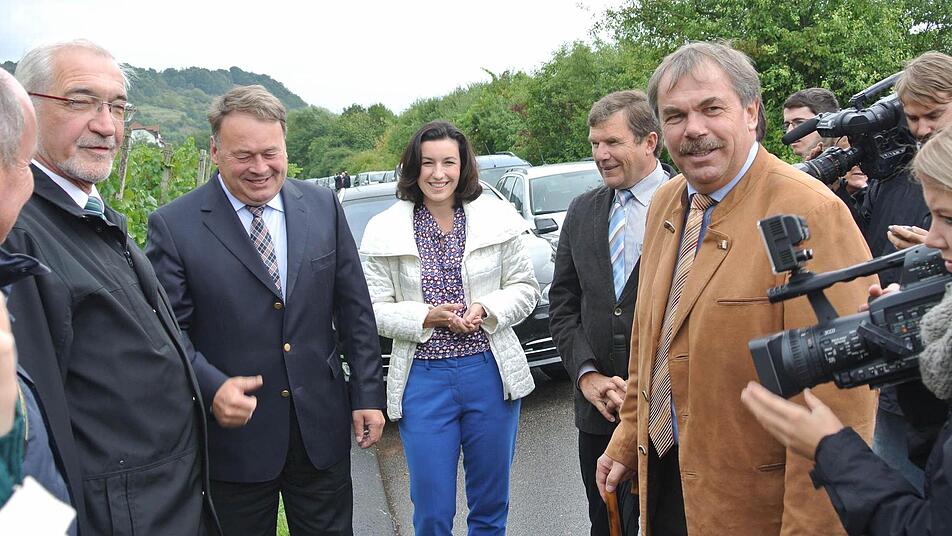 Auf der Maintalautobahn beginnt das Fränkische Weinland erst bei Schweinfurt - ein Umstand, der bei Kommunalpolitikern und Winzern im Landkreis an der Grenze zu Bierfranken immer ein bisschen für Grummel gesorgt hat. Da geht natürlich, selbst wenn es Strippen regnet, rein symbolisch die Sonne auf, wenn der bayerische Landwirtschaftsminister zum Pflichttermin ins Abt-Degen-Weintal anreist.