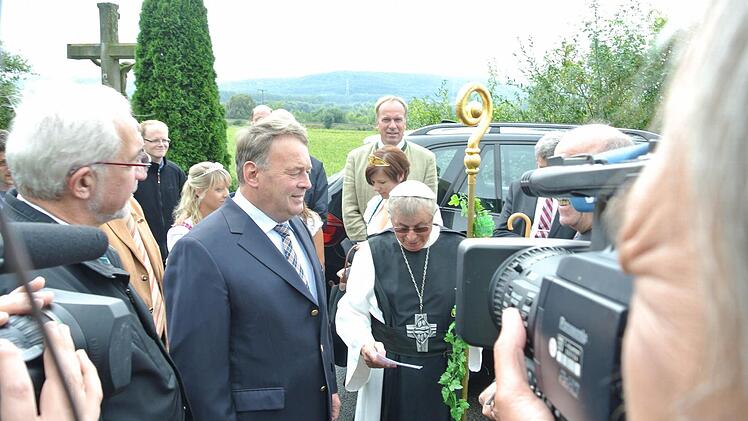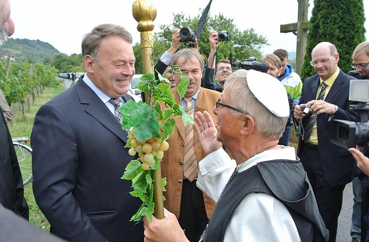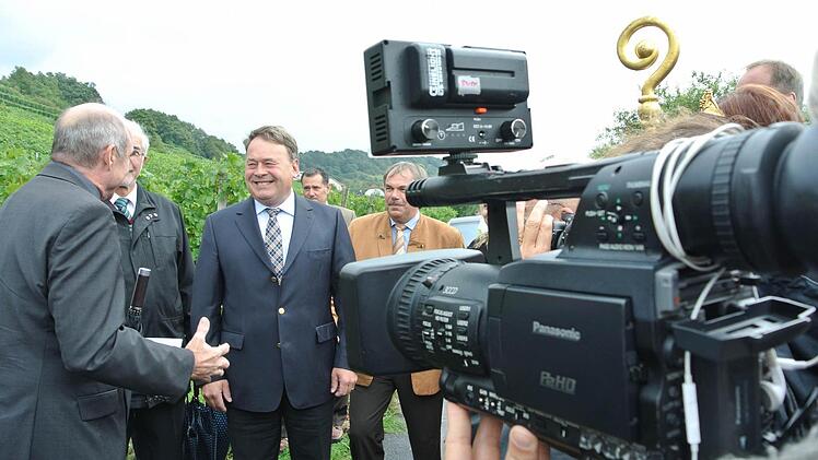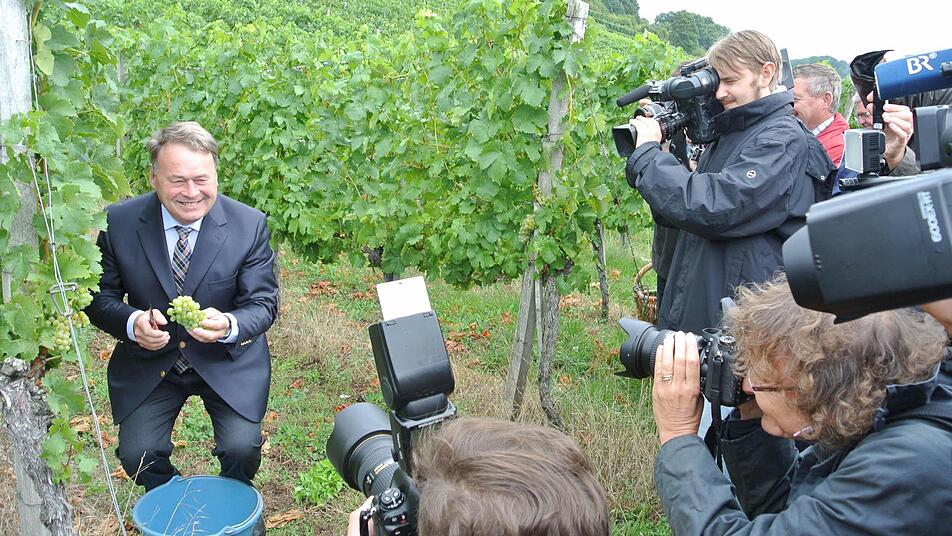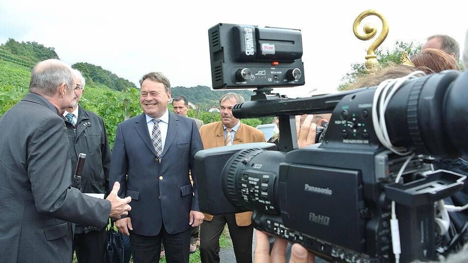 Minister Helmut Brunner reiste aus München an, um im Beisein von viel Prominenz aus Weinfranken den ersten Müller-Thurgau bei Steinbach vom Stock zu schneiden. Die heimischen Winzer rückten sich dabei als Kulturpfleger in den Blick.