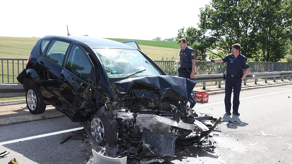 Ein entgegenkommender VW-Golf-Fahrer erkannte die Situation, wollte seinerseits dem auf seiner Fahrspur entgegenkommenden Pkw nach links ausweichen. Dennoch kam es zwischen beiden Fahrzeugen zu einem Frontalzusammenstoß. Die Wucht war so groß, dass der Mercedes nach rechts mit dem Fahrzeugheck auf eine Leitplanke geschleudert wurde. Beide Autos blieben schließlich quer auf der Bundesstraße stehen.
