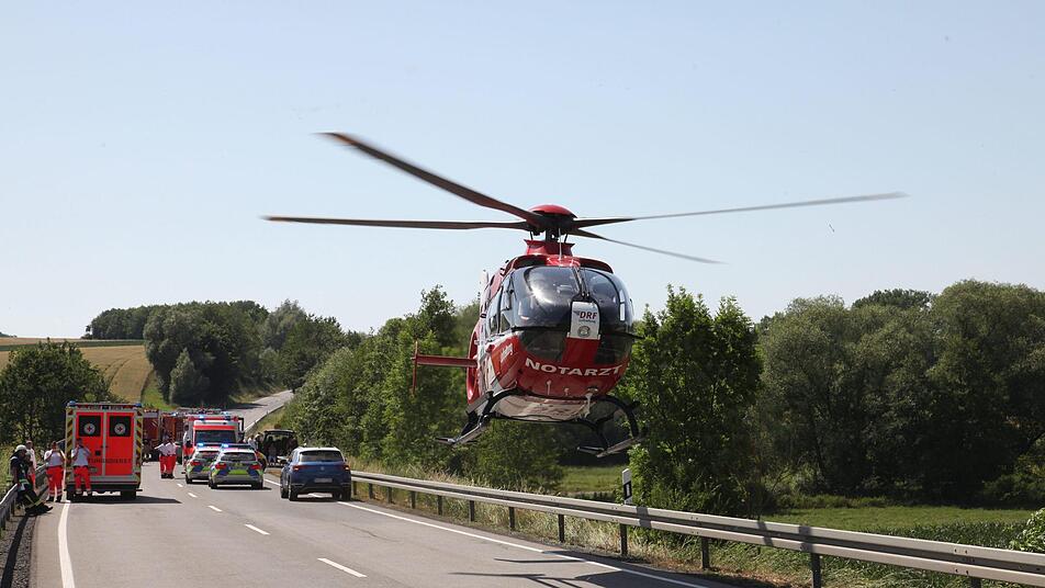 Der Unfall hatte zu einem Großaufgebot an Rettungskräften geführt. Die Integrierte Leitstelle Schweinfurt (ILS) entsandte drei Rot-Kreuz-Rettungswagen aus Hofheim, Ebern und Haßfurt, eine Notärztin aus Hofheim, zwei Rettungshubschrauber aus Suhl und Bayreuth sowie den Rot-Kreuz-Einsatzleiter für den Rettungsdienst, Ingo Stöhlein. Das Ehepaar wurde jeweils mit einem Rettungshubschrauber in Kliniken nach Bayreuth und Meiningen geflogen. Die Unfallverursacherin kam mit einem Rettungswagen in eine Schweinfurter Klinik.