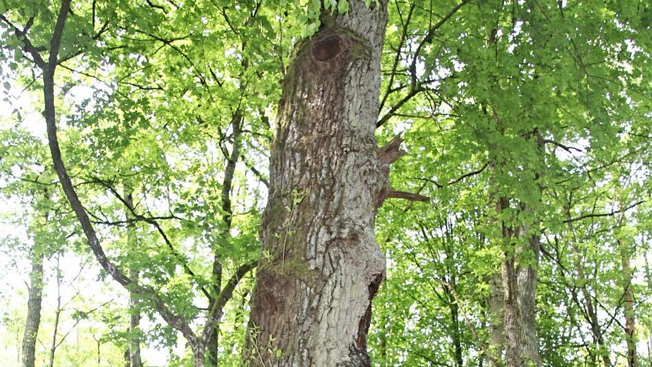 Angekommen an einer knorrigen Eiche zeigt Gnannt nach oben, wo sich in zirka acht Metern ein Astloch befindet. "Dort ist ein Ast abgestorben und an dieser Stelle ist es innen etwas mulmig", sagt der Förster. "Da hat ein Specht reingeklopft und sich seine Höhle geschaffen", erläutert Gnannt. Auch Wildkatzen würden solche großen Höhlen als Unterschlupf nutzen.